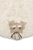 Maak kennis met je zes favoriete harige vriendjes! Een rond, wasbaar kleed in natuurlijke kleur, met de vriendelijke gezichten van verschillende lieve hondenrassen. Elke hond is handgemaakt, met unieke details zoals 3D-oren, interactieve tongen, snorharen, baarden en ogen, gemaakt met knopen voor een realistische touch.