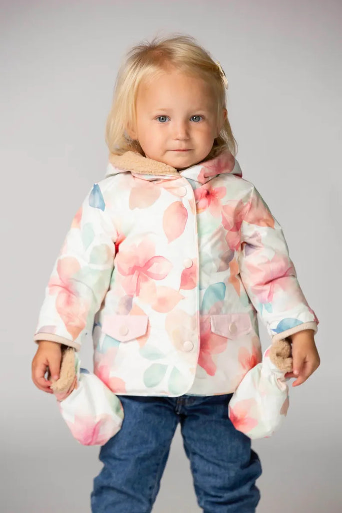 Dit winterse babyjasje met warme padding zal je hart meteen doen smelten! Je kunt de (afneembare!) wanten gemakkelijk aan- en uittrekken zonder ze kwijt te raken.