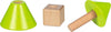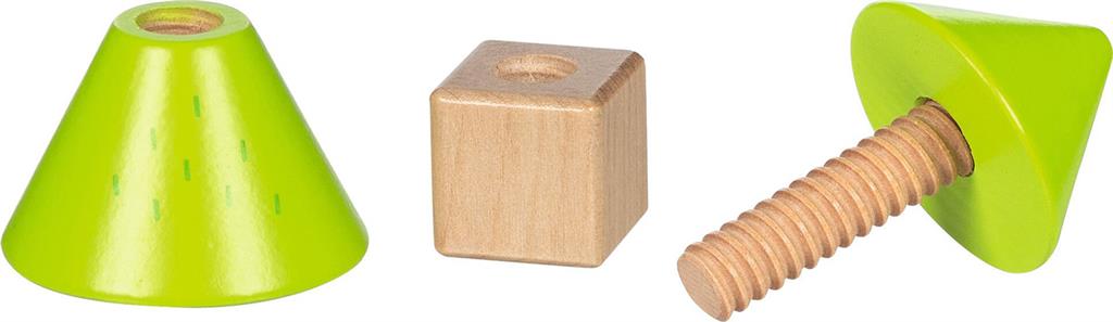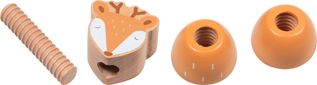 Houten schroefdieren om in en uit elkaar te draaien. Eens in elkaar gedraaid kunnen ze ook gebruikt worden als speelfiguren in de kleine speelwereld of sensorisch spel.
