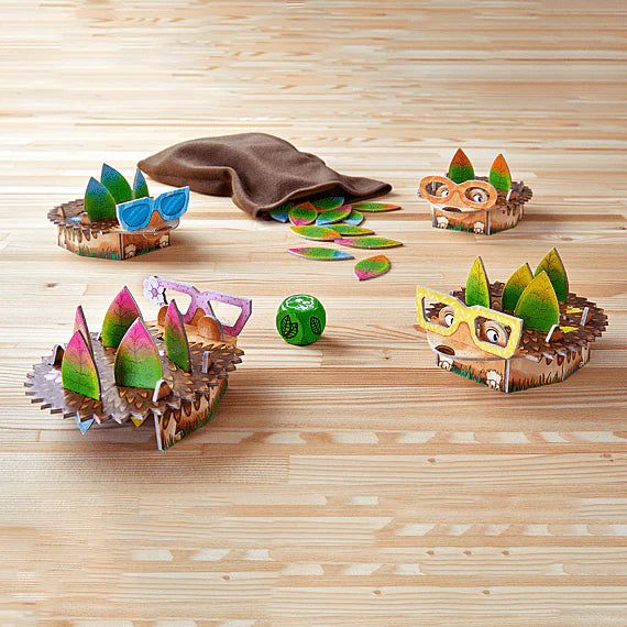 In het vrolijke dobbelspel Egelvrienden – Op kleurrijke bladerenjacht van HABA draait het allemaal om de kleine egeltjes die zich vandaag willen verkleden. Ze willen grote stekels in hun lievelingskleur verzamelen! Om dit te doen, moeten spelers bladeren van de juiste kleur uit het zakje met bladeren trekken. Maar pas op: door de klap kunnen alle bladeren wegvliegen en bladeren die veilig leken, vliegen misschien weer weg! De speler wiens egeltje als eerste helemaal versierd is met bladeren van zijn of haar kleur, wint.