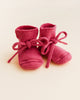 De gebreide Hvid babyslofjes worden geprezen om hun perfecte pasvorm, dankzij een uniek hielontwerp dat ervoor zorgt dat ze stevig aan kleine voetjes blijven zitten. Het naadloze breiwerk en de aangenaaide veters zorgen voor extra gemak, terwijl de merinowol de temperatuur reguleert en kleine voetjes het hele jaar door comfortabel warm houdt. Geleverd in een charmant katoenen zakje, zijn ze een perfect kraamcadeautje en combineren ze comfort, functionaliteit en stijl voor je kleintje.