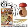 Inclusief bij deze set zijn 300 houten prikkertjes, 3 boortjes in drie maten en een prachtige ergonomische houten notenkraker/kastanjehouder