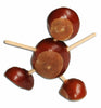 De houder is gemakkelijk in kinderhandjes vast te houden zodat ze veilig met een boortje een gaatje in de kastanje of het eikeltje boren. Een prikker of lucifer erin en je kunt eindeloos knutselen.