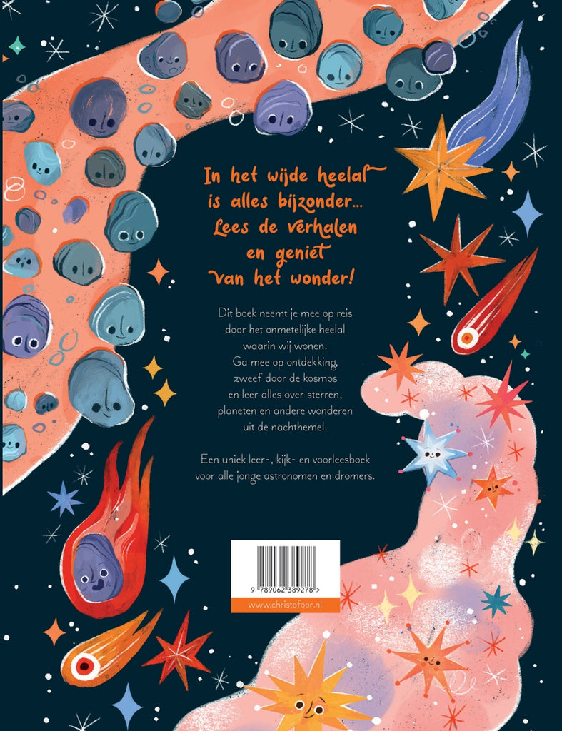 Een kleurrijk boek vol weetjes over sterren en planeten. Leer samen over de ruimte in dit vrolijke kijk- en voorleesboek voor jonge ontdekkers.