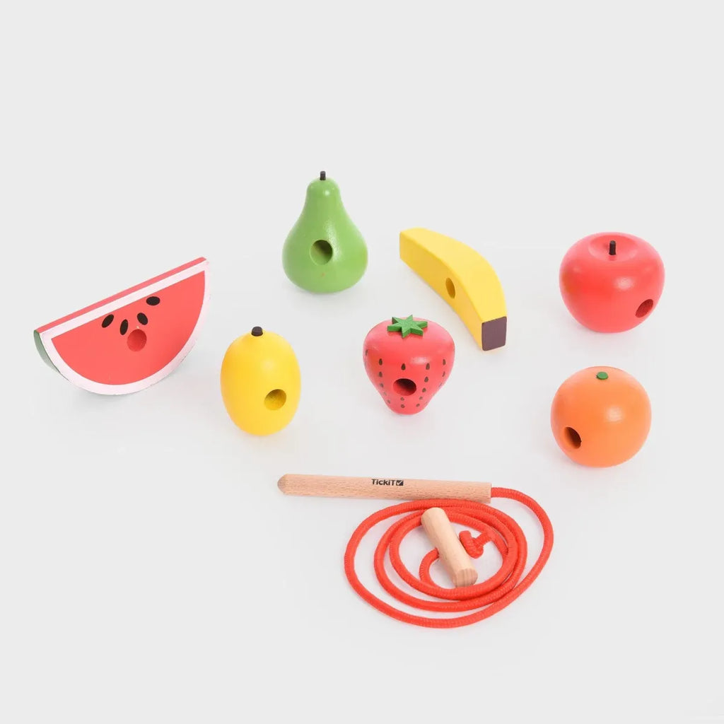 Leuke set om te rijgen met houten fruitstukken. Een geweldige manier om met uw kind te bespreken hoe belangrijk gezond eten is, hoe fruit wordt verbouwd, in welk klimaat het het beste groeit, uit welke landen het afkomstig is, wat zijn favoriet is en hoe het smaakt. Welk fruit moeten ze nog proberen?