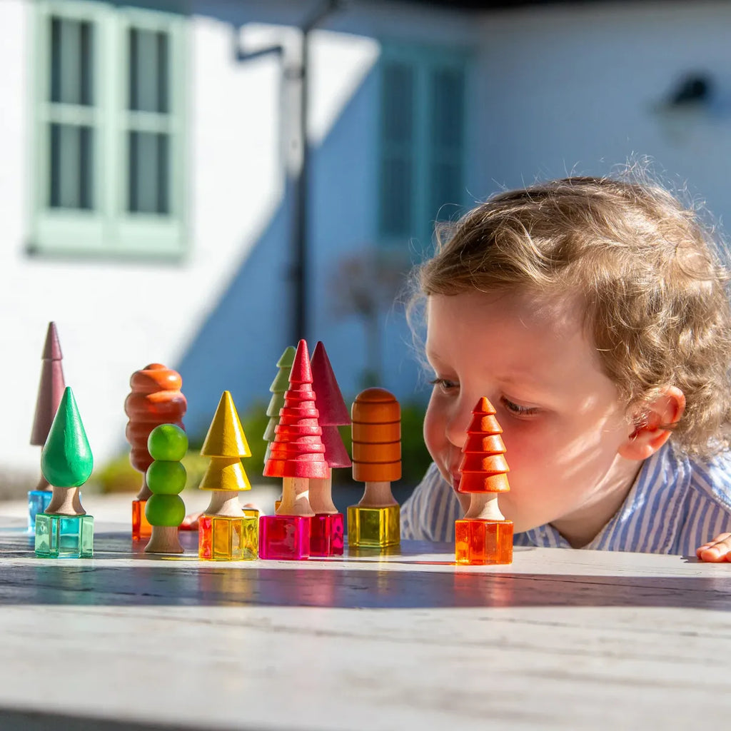 De 10 verschillende gevormde bomen zijn in verschillende maten en hebben natuurlijke tinten van bruin, groen, rood, oranje en geel. Ideaal voor kleine wereldspellen, het ontwikkelen van beschrijvende woordenschat, het verkennen van overeenkomsten en verschillen en het bevorderen van vergelijkende of fantasierijke taalvaardigheden. Elke prachtige boom heeft zijn eigen kenmerken in een verscheidenheid aan kleuren die de seizoensveranderingen door de lente, zomer, herfst en winter vertegenwoordigen.