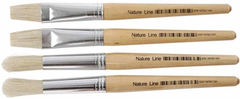 Extra stevig voor kleine kinderhandjes zijn deze schilderkwasten met varkensharen met korte, gelakte steel.