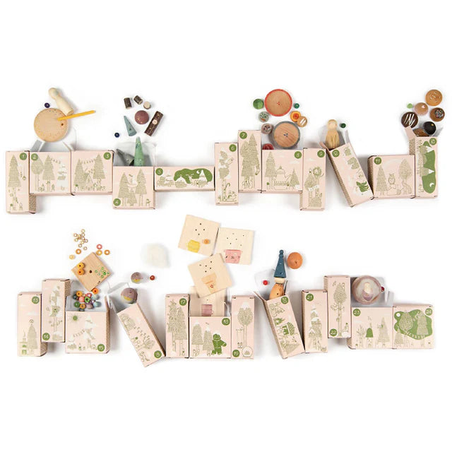 Inhoud: 24 dozen, meer dan 180 onderdelen in verschillende materialen: hout, stof, draad, wol en meer. Inclusief een originele kartonnen cirkel, ontworpen als adventskroon
