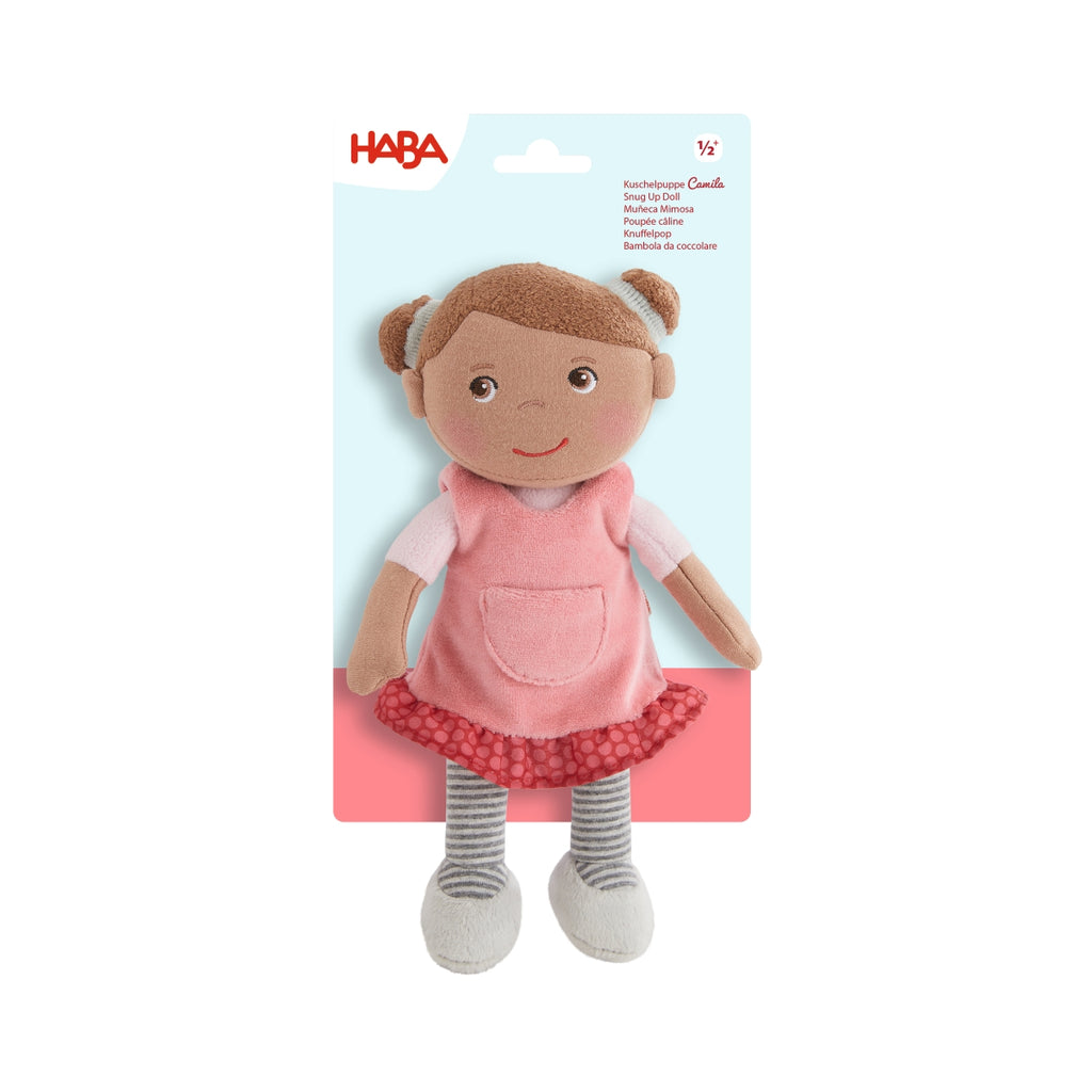 Camila, de knuffelpop, verovert direct de harten van kleine poppenliefhebbers. Met haar extra zachte vulling en even zachte lijfje is ze perfect om mee te knuffelen. Camila zal kleine poppenfans vergezellen tijdens hun baby- en peutertijd, en zelfs daarna. Dankzij haar hoogwaardige vakmanschap is ze een onovertroffen erfstuk van hoge kwaliteit. De kleding is erop genaaid.