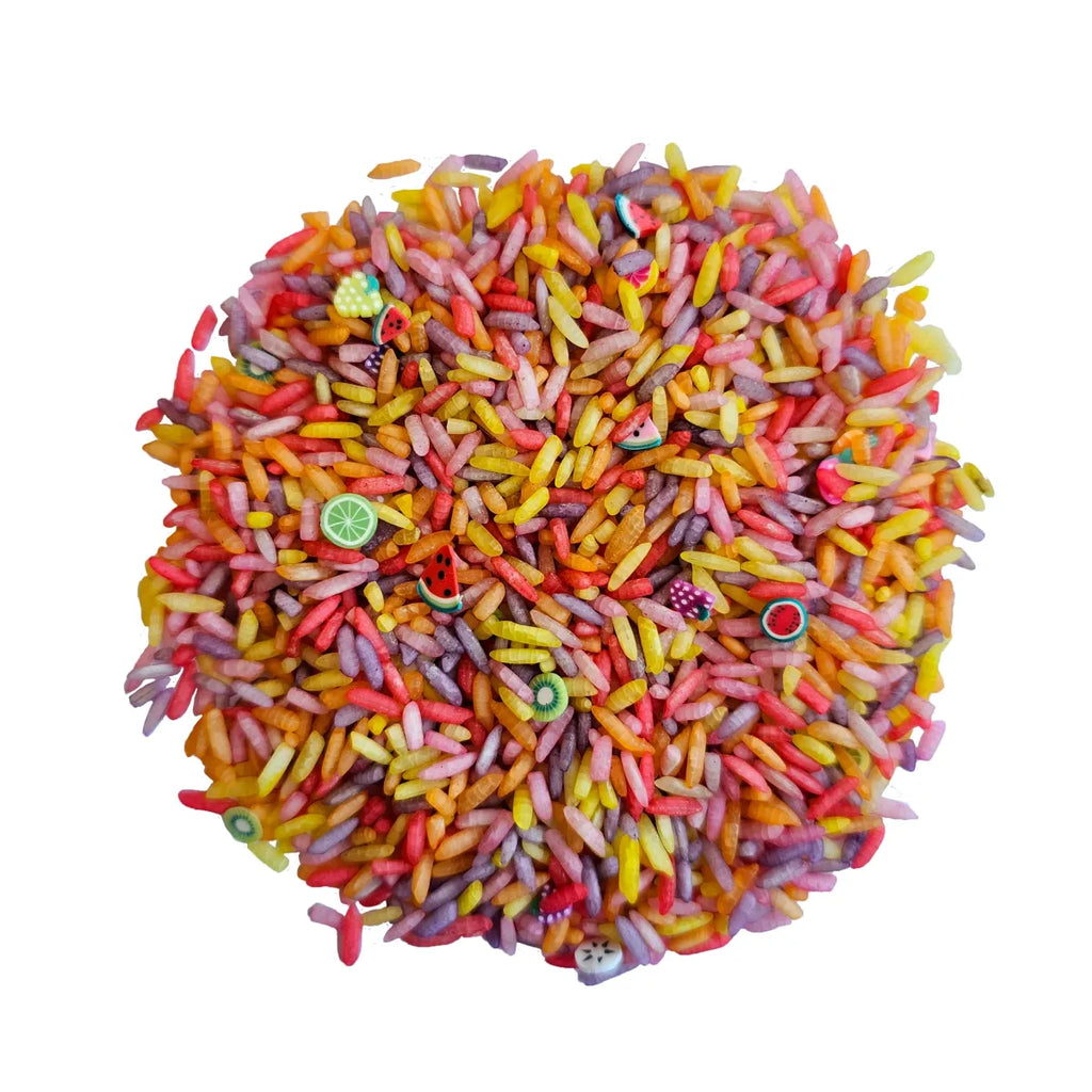 Kinderen zullen het spelen met sensomotorische gekleurde speelrijst geweldig vinden. Het is het ideale speelgoed voor kinderen om te ontdekken. Spelen met speelrijst helpt prikkels te verwerken en te ontspannen.