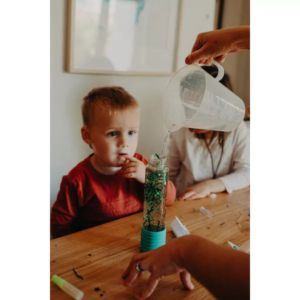 De bekroonde DIY Calm Down Bottle van Jellystone Designs  is een unieke sensorische fles, waarin u alle creatieve elementen ontvangt die nodig zijn om een ​​sensorische fles te maken die perfect is voor uw kind. Voeg gewoon water toe en het is klaar voor gebruik! Met deze optie kunt u de sensorische fles opnieuw vullen en hergebruiken voor eindeloze creatieve opties.