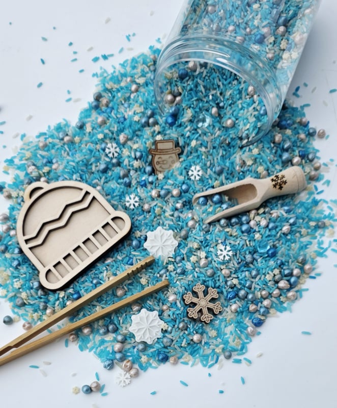 SensoryMix zoals rijst, kikkererwten en gekleurde pasta´s.