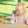 Gemaakt van veilig voedselveilig silicone, zijn ze zacht, flexibel en perfect van formaat voor kleine handjes om vast te pakken, te knijpen en te verkennen. Hun unieke twist-to-open ontwerp laat ze open springen, waardoor een holle binnenkant zichtbaar wordt die kan worden gevuld met gedroogde peulvruchten of kralen om natuurlijke sensorische shakers te creëren. Dit voegt een auditief element toe aan de speeltijd, waardoor kinderen worden aangemoedigd om te experimenteren met verschillende geluiden en ritmes, terwijl hun gevoel van aanraking, gehoor en nieuwsgierigheid wordt gestimuleerd.