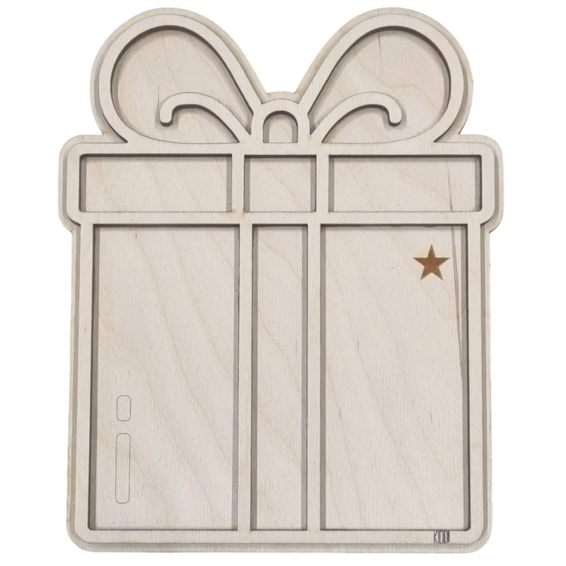 Vulvorm of speeltray in de vorm van een cadeau, ideaal voor een verjaardag / Sinterklaas of de kerst. Gemaakt van onbewerkt berken multiplex