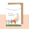 Een feestkaart vol dromen, durf en zachtheid. Voor wie buiten de lijntjes kleurt, voor wie blijft hopen, of gewoon wat extra magie kan gebruiken. Deze kaart is ideaal als originele verjaardagskaart maar ook perfect bij een nieuw begin, een sprong in het diepe of een klein duwtje in de rug. Warm, eigenzinnig en vol verbeelding.