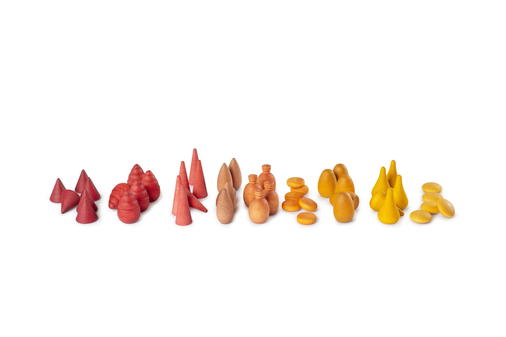 Het pakket bevat: 81 stuks in 9 verschillende vormen en 9 kleuren, met hoogtes variërend van 10 mm tot 45 mm.
